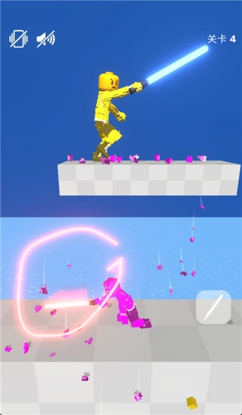 2、游戏采用简洁的触控操作方式,玩家仅需滑动手指就能操控角色进行攻击和移动,以此打击各类敌人,并战胜关卡里的Boss。