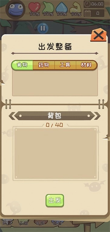 1、在本站完成安装后点击打开游戏,就能开始采集资源了,点击右下角的“出发”按钮即可。