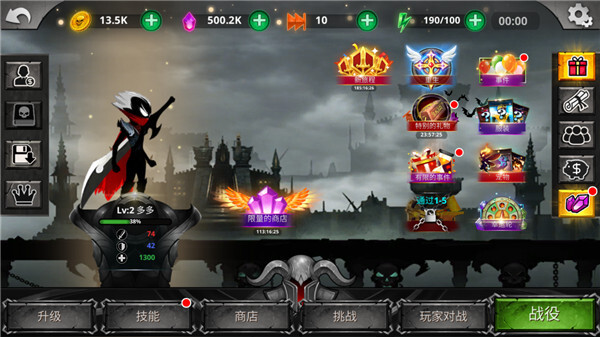 火柴人传说暗影战争是一款暗黑风格的冒险动作游戏,以火柴人战斗闯关为核心主题。在游戏里,你能体验到精彩炫酷的乐趣,需要凭借自身力量不断消灭四面八方涌来的各类敌人,以此获取丰厚的金币与奖励。此外,你还可以持续升级并打造专属武器装备,学习多样技巧和武功秘籍,成为战场上无人能敌的存在。