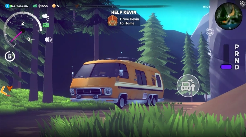 模拟真实的房车痛点,包括蓄电池电量管理、净水箱补给、灰水箱排放以及燃气存量。你需要定期在加油站和露营地进行维护。