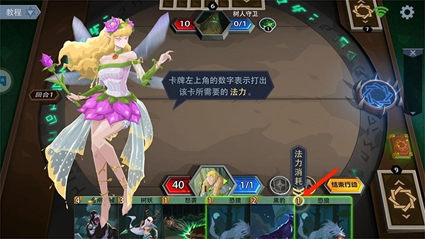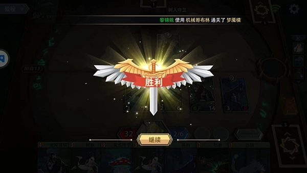 14、英雄在自己回合是会自动攻击的,我们需要合理的使用英雄技能,抓牌,选择结束行动即可,