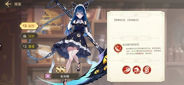 6、【镰刀女帕米娜】被动流血,技能单体多段伤害,伤害一般且获取方式较难,不推荐。