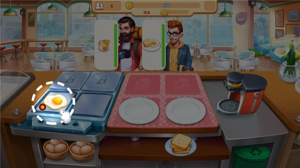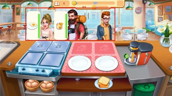 4、随心使用厨房里的道具,把食材烹饪成美食,让众多客人知道你的烹饪之家。