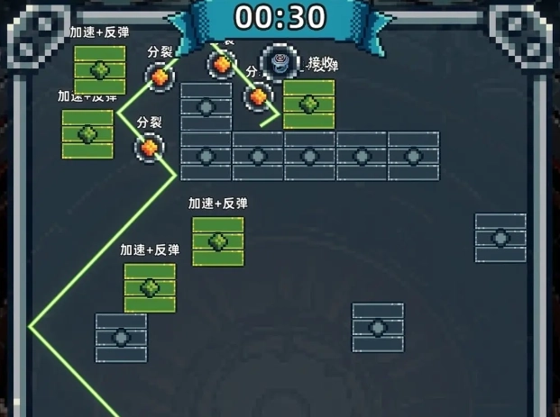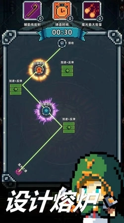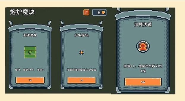 魔光之戒铸造师一款像素风格的闯关。玩家可以这么理解,玩家就是铁匠,虽然不需要打斗,但是玩家需要通过不断挑战关卡来获得魔戒。玩家需要在游戏中通过分裂和反射模块,收集从魔光之源射出的光点,收集的越多,得分越高。就像是之前的弹弹球一样,只不过这次是收集,为不是敲砖块。喜欢的玩家可以试试,使用最少的模块获得最高的分数