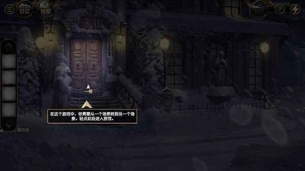 4、在这个游戏中,你需要从一个场景转到另一个场景,轻点门,即可进入旅馆。