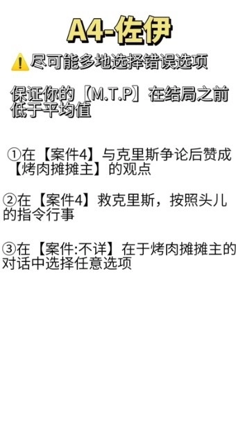 AB分支:听完他的一席话后会有一堆选项,在最后他掏枪的那个选项里,选择第一条“知道了。”进入A结局,选择了第二条“不对劲”进入B结局(建议sl把两个结局快速拿到)。
