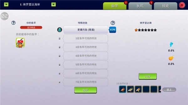 5、解锁全新的渔场,尝试更多的鱼种,挑战全新的任务/6动脑思考,选择合适的装备来钓到更多鱼儿