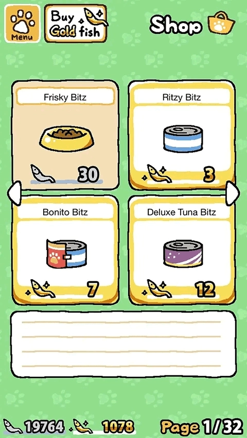 一、商店:花银鱼干或者金鱼干来购买猫粮与玩具。