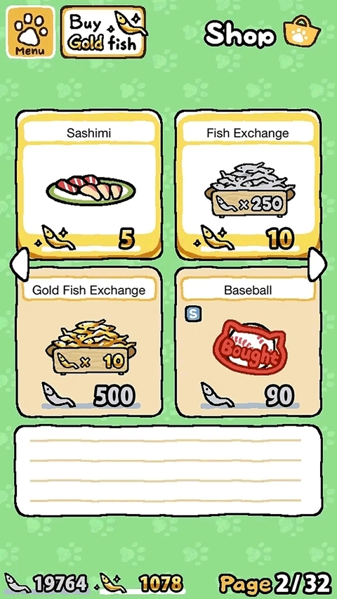 总的来说,金鱼干主要是由特殊猫给的,银鱼干和金鱼干可以在商店里互换。为了玩一个游戏充钱明显是没有必要的,慢慢攒就好了。