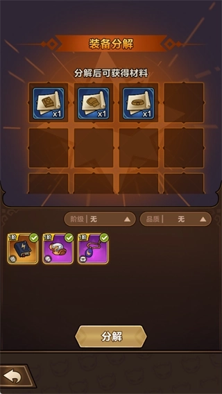 6、多余或不需要的装备可分解为资源,实现最大化利用。