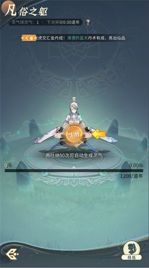 2、通过修炼吐纳能够获取真气,玩家积累到一定量的真气后,就能开启下一层的进阶,从而提升自身的能力