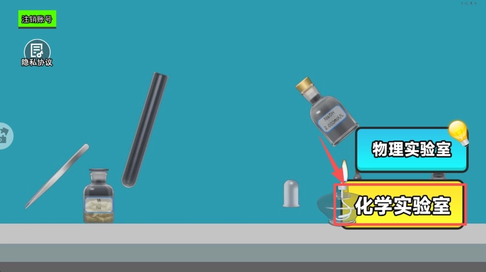 2、可根据自身兴趣,选择“化学实验室”或“物理实验室”,进入对应的实验环境。
