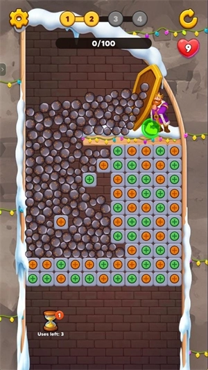 4、玩家消除方块后,上方的石头等物品会下落,只要在规定时间内让消除数量达到一定标准,就能顺利通关。