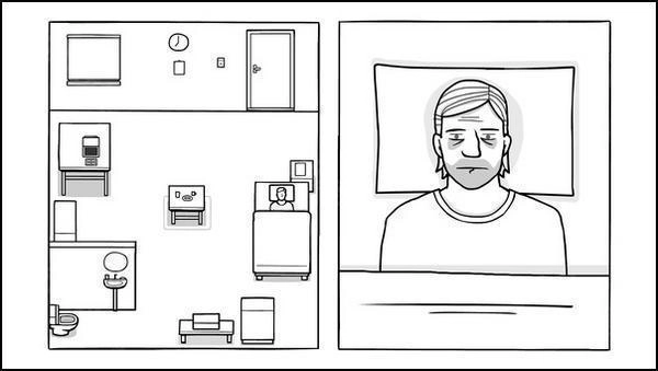 6、此前起床、早餐、洗漱等事项均已完成,接下来是11点的查房。需要前往4处黑圈处点击放大并按下按钮,随后与进入的护士进行交谈。