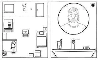 2、第一步是类似教学引导的关卡,先前往1号位置点击,接着在右侧点击杯子里的牙刷,随后按照提示左右拖动来模拟刷牙动作。完成后点击水龙头,再用毛巾擦拭面部,这样就完成了这部分操作。