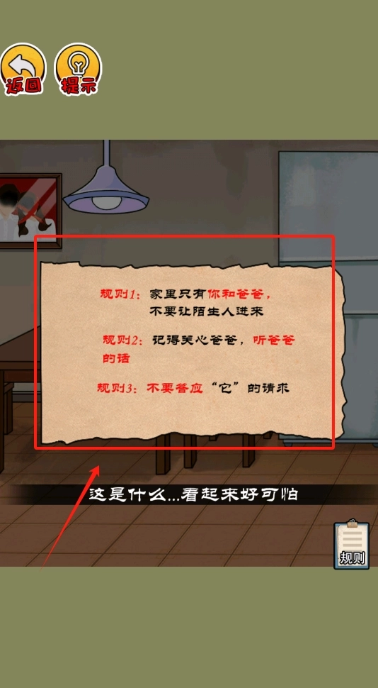 3、仔细阅读那张破旧纸条上的三条规则,并且按照这些规则行事,以此来避免危险的发生。