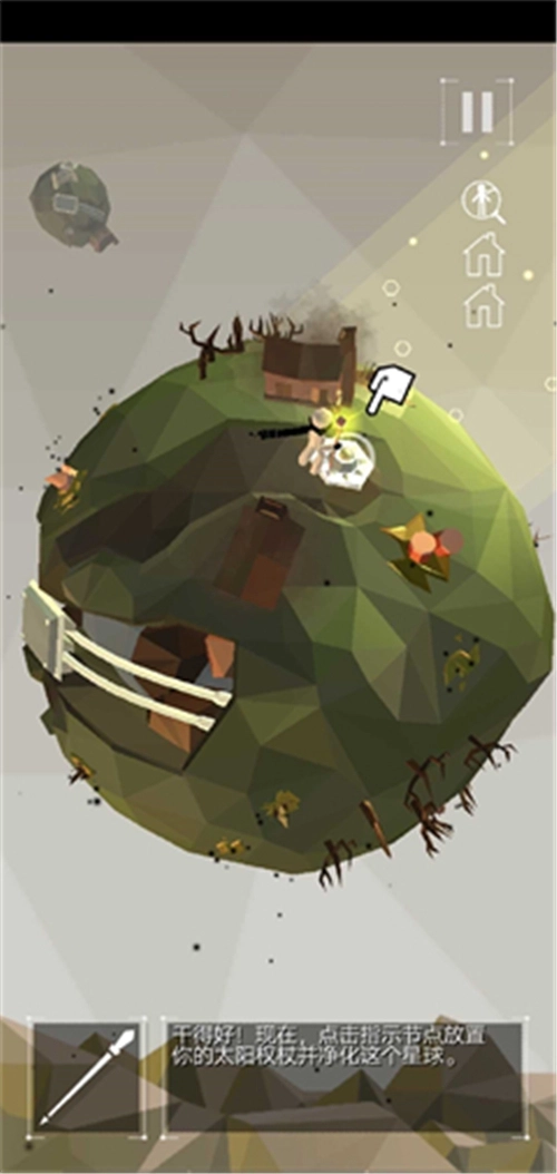 2、用手指滑动星球,借助阳光折射来获取能量,从而一步步净化病毒。