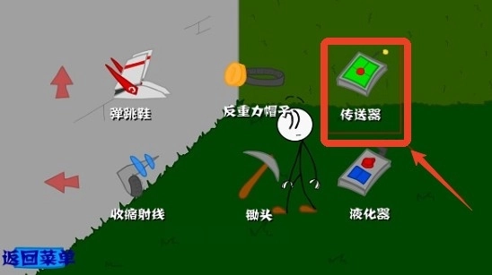 2、在出现的六种道具里,选择“传送器”就能被传送到屋顶。