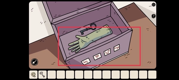 4、接着按照文字提示打开一楼的紫色箱子,找到手套和钥匙。