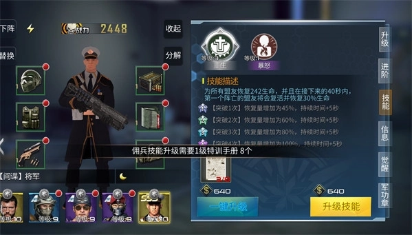 若要对佣兵的技能进行升级,必须准备好对应的材料,并且不同兵种所需的材料存在差异。