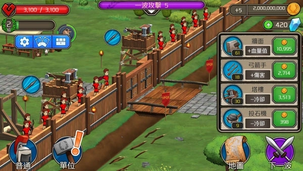 3.消灭敌人进宫后,便可获取大量游戏奖励,通过消耗这些奖励可以提升你的城防防御,并且还能升级你的士兵。