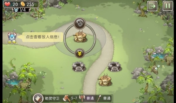 1、游戏仍然采用传统的塔防操作,玩家需要在防守时点击屏幕上几个固定的空白位置来安装防御塔。