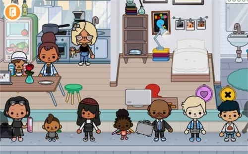 5、你也可以点击左上角的退出房间按钮,回到自己的家。到家后能看到不少小朋友,点击任意人物或物品就能进行移动操作。