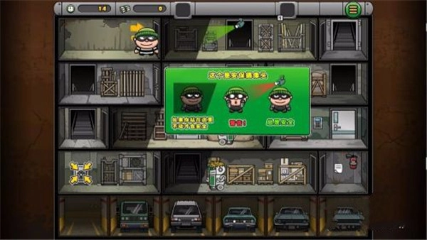 1、并安装本站提供的神偷鲍勃4,打开进入游戏点击屏幕就可以进行移动,当到了在门口,会显示离开的图标,点击图标,就可以到达另外一个地方,如图所示