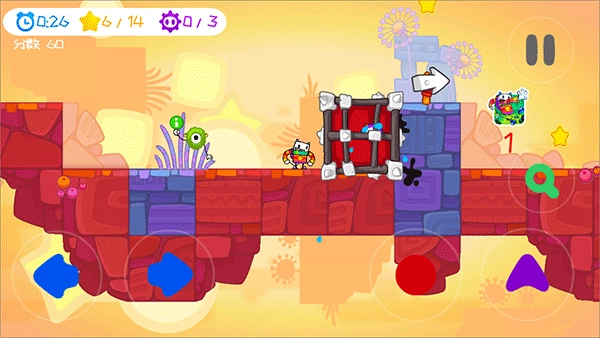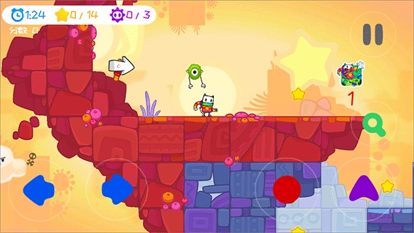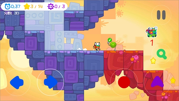 凯奇大冒险Cattch是一款休闲益智的闯关冒险游戏。游戏中玩家将操纵主角Cattch,在看电视新闻时发现自己的家园被怪物入侵,为了解救家园、拯救亲朋好友,Cattch走向了冒险、打败怪物的道路。游戏操作十分简单,玩家只需要通过画面中的虚拟摇杆操控Cattch,做出左右移动、跳跃、攀爬等不同的操作,同时找到关卡中的星星,打倒敌人。游戏内含五十多个关卡,十分有趣。