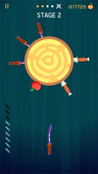 3、随着游戏的发展,上面也会有苹果可以获得,而苹果可以用来解锁各种飞刀;