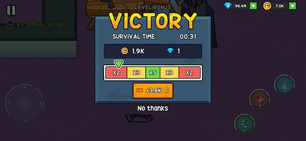 2、消灭僵尸还能得金币,使用金币可以解锁服装和各种武器。