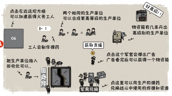 8、最后就是要介绍“兵工厂”,兵工厂就是用来招募工人,让他们负责生成子弹,这样就能有充足的武器物资了,具体的操作流程如下。