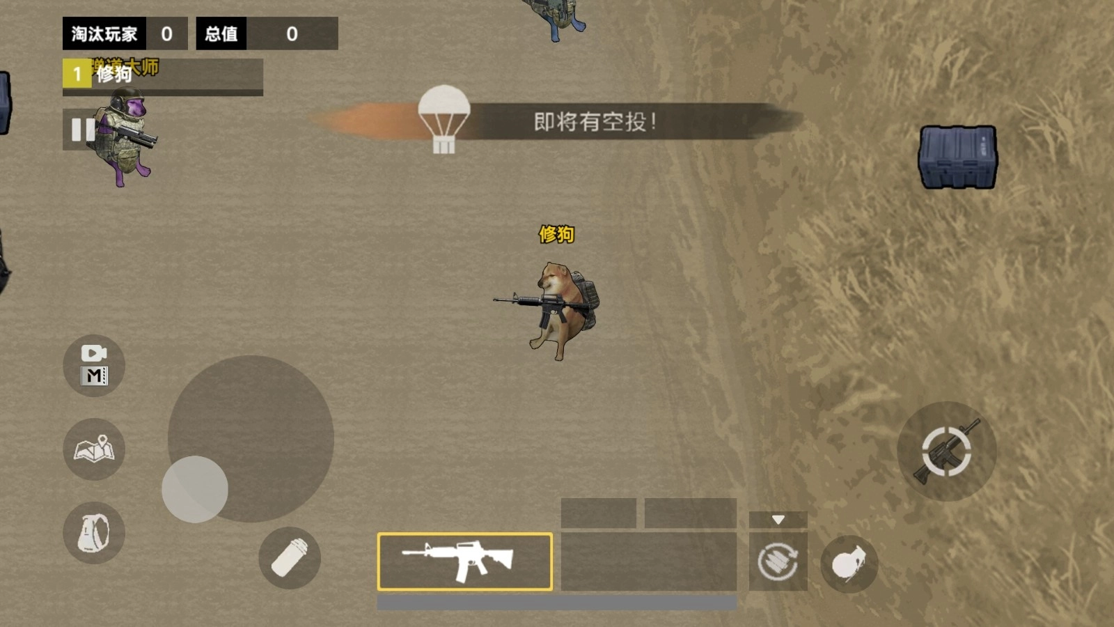 1.用左手的虚拟摇杆操控狗狗移动,右手摇杆用来调整射击方向,点击射击键就能开火。玩家可以同时进行移动和瞄准,这样能提升生存几率。