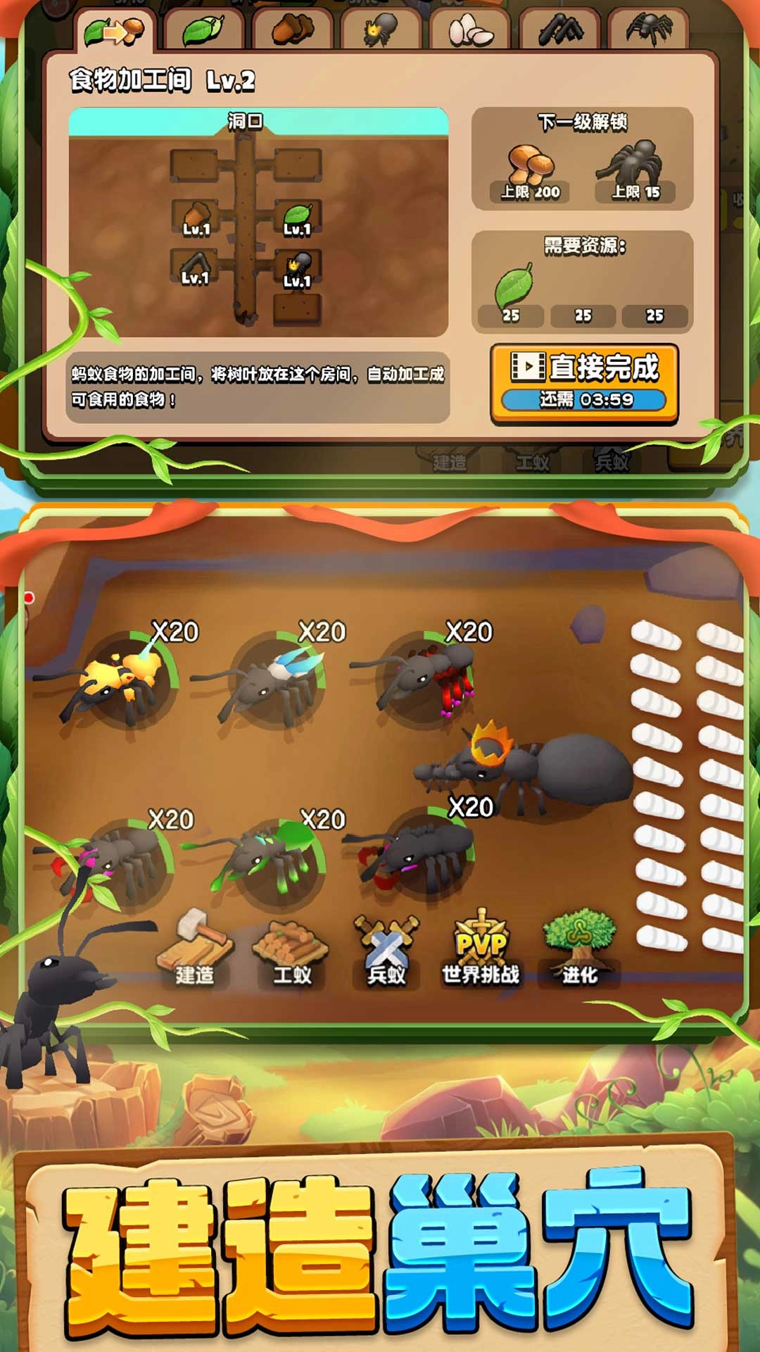 3、打造出最顶尖的蚂蚁军团,前往各处开展冒险;