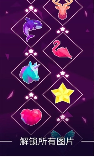 在《点线世界》这款游戏里,玩家能够操控色彩斑斓的线条,锻炼出更为敏锐的反应力,让线条间的各个点实现顺畅衔接。游戏中会有风格各异的背景音乐持续切换,当遇到不同动物时,还会随之切换成对应的音乐曲目,通过人性化的模式来满足玩家的个性化需求。