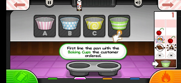 1、进入游戏后,第一步是接收客户订单,接着切换到面糊区,开始制作纸杯蛋糕。
