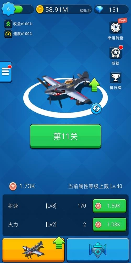 在游戏里,提升战机火力有两种途径:一是通过合成来解锁新飞机。把两架相同等级的飞机合成,就能得到一架等级更高、威力更强、外观也更震撼的新战机。持续合成下去,你最终会拥有最顶尖的战斗力。