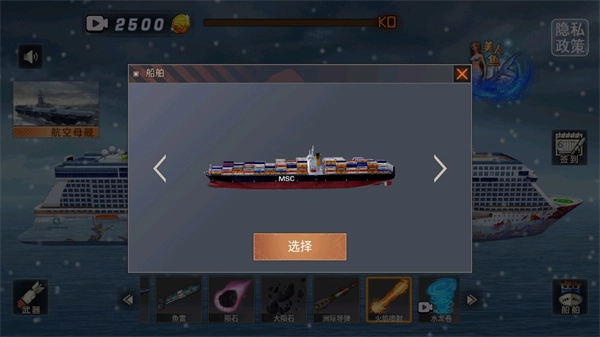 3、接着就可以用下方的工具去攻击船只,整个游玩过程特别解压,而且没有什么规则限制。