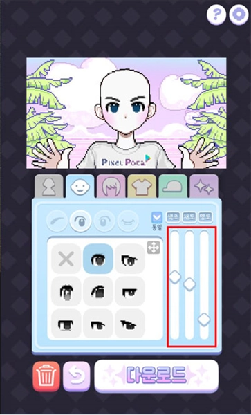 4、眼球细节调整:在眼睛选择框架内,拖动右侧滑杆能够调节眼球的颜色(比如粉色、蓝色等)和亮度,以此打造出具有个性化的眼部效果。