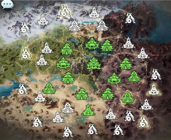 这些buff是随机刷新的,根据我的研究,通常1级和2级据点的刷新概率最高,图里的闪光点就是buff刷新点。
