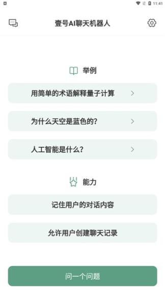 壹号AI聊天机器人,你能随时在此与AI机器人展开对话。你们的对话毫无局限,尽可畅所欲言。在这里,和它交流互动,主要通过问答的方式进行对话,让机器人更好地了解你期望的对话氛围,如此就能与你一同尽情畅谈。