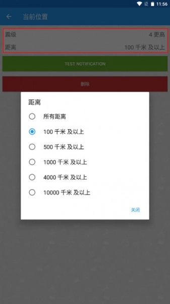 4、依据你当前的位置来调整震级和距离参数,完成后点击绿色按钮就能设置成功。