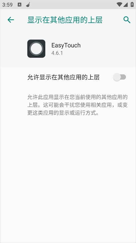 ② 进入系统设置 → 找到「显示在其他应用上层」选项 → 开启 EasyTouch 的权限;