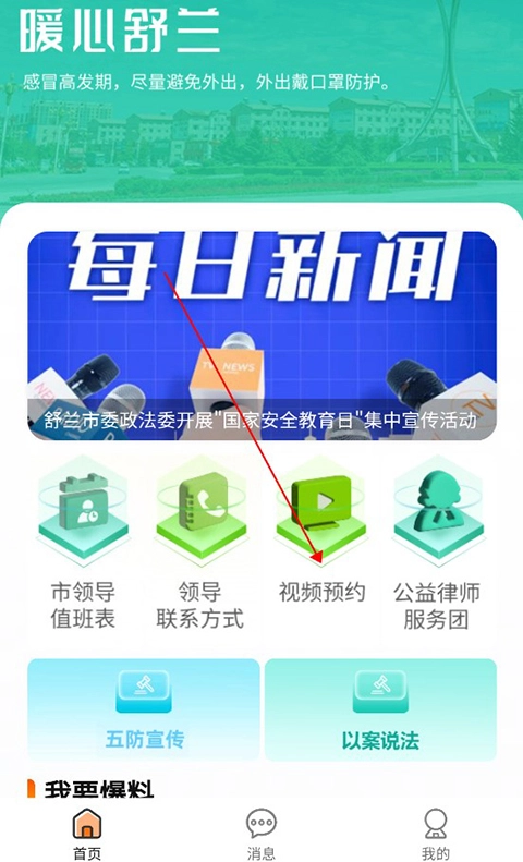 第一步:完成安装后,在首页顶部的显眼位置找到并点击【视频预约】入口。