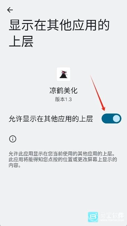2、权限设置:安装完成后根据提示开启“显示在其他应用的上层”权限。