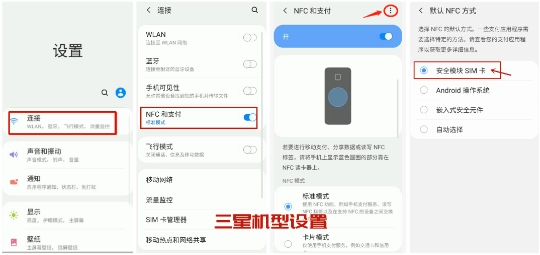 三、NFC默认支付方式需使用SIM卡,下面为大家呈现不同机型的设置截图,伙伴们可要仔细看清楚啦!点击图片就能放大查看哦~