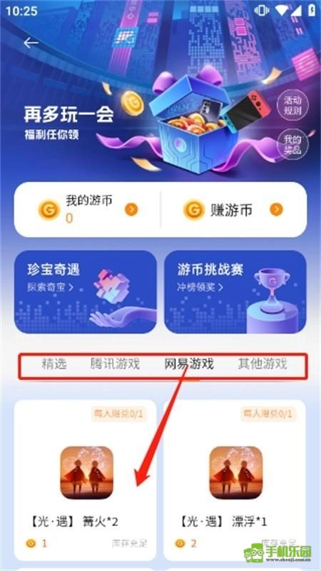 2、借助分类功能能够快速查找各类游戏,下图展示的正是光遇优惠券的兑换页面。