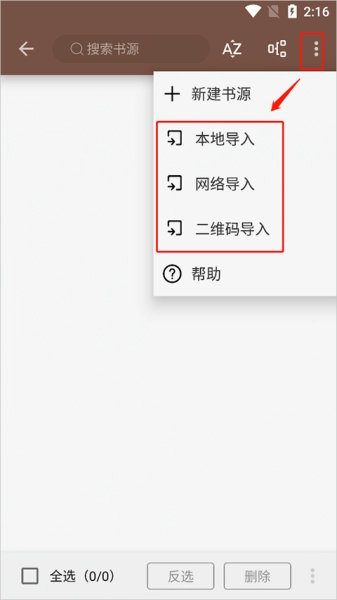 3、若是书源网址,可点击下方的“网络导入”按钮,接着粘贴网络书源进行使用。