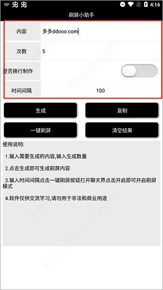 6、只要打开聊天界面点击开启即可开始刷屏模式。