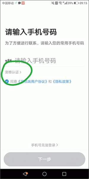 1、在接单前需要先完成资格认证,具体操作是打开天津出租司机端,然后点击下图所示的资格认证选项。